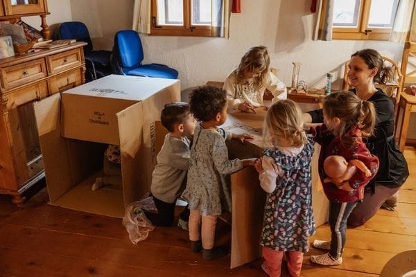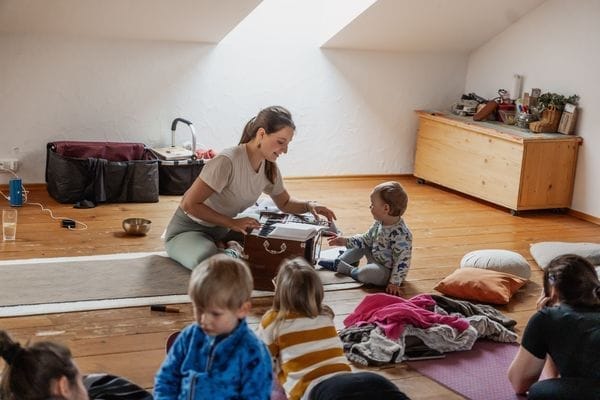 Es gibt keine Kinderbetreuung per se, dafür einen geschützten Raum und ein kindgerechtes Setting mit Impulsen und kreativen Angeboten, die dem Entwicklungsstand der Kinder entsprechen. Dein Kind darf bei dir sein oder in der (Kinder-)Gruppe.